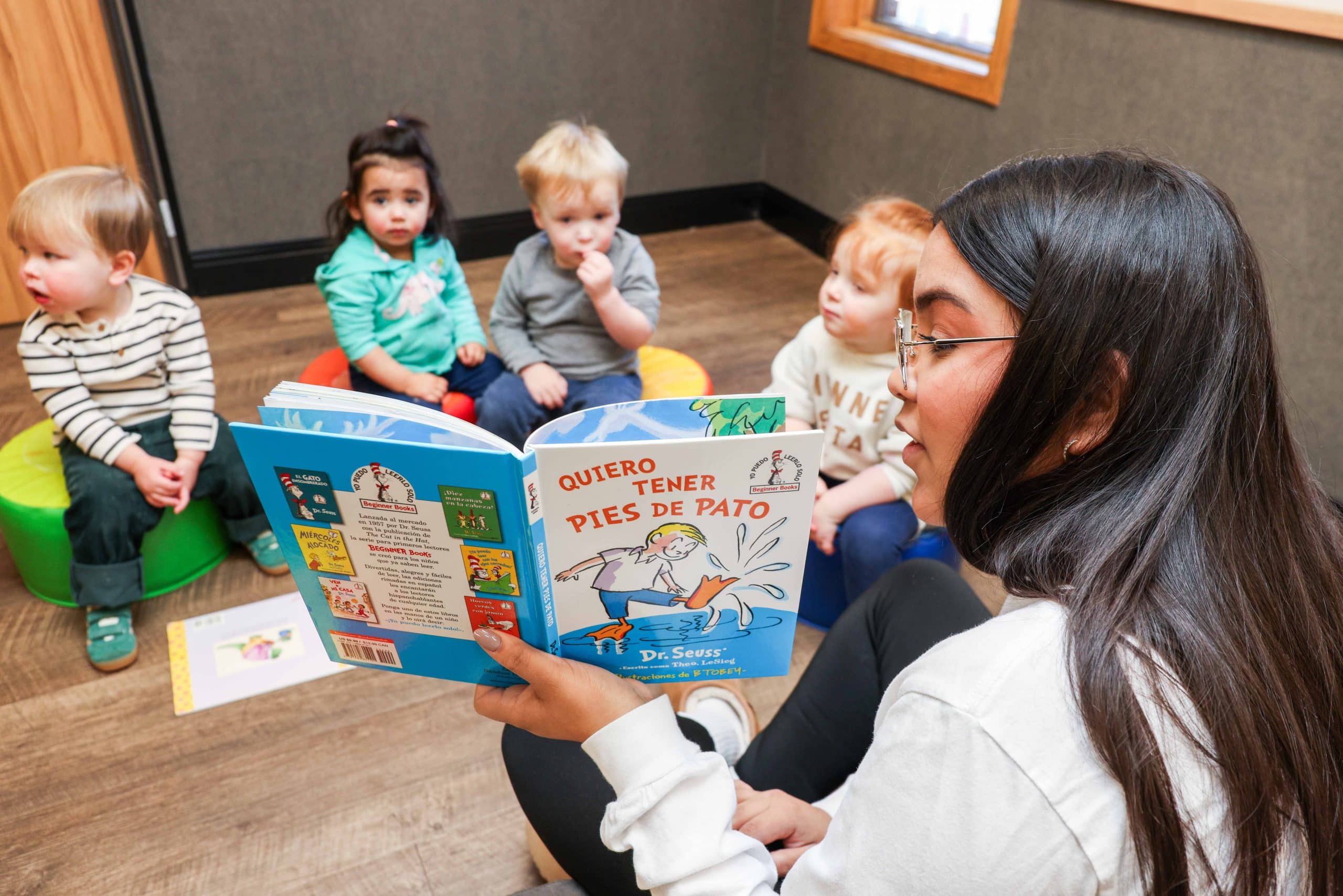 Our early childhood Spanish classes includes weekly interactive “group time” lessons featuring songs, books, finger plays, and fun for all programs—infants through pre-kindergarten.